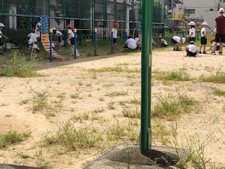 この夏休み中に、運動場のあちらこちらにたくさんの雑草が姿をあらわしてきました。