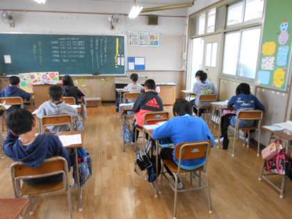 本日、6年生が、文部科学省平成27年度全国学力・学習状況調査を実施しました。みんな、緊張した面持ちで、担任の話を聞いた後、国語・算数・理科の問題に取り組みました。