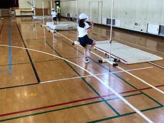 65センチ、85センチ、1メートルの3コースに分かれて走高跳をしています。