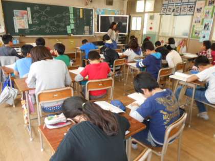 社会科の授業の中で、それぞれの班で選んだ国についての情報を本やインターネットで調べまとめました。