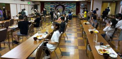 全員元気に2日目の朝を迎えました 昨夜は多くの人がぐっすり眠れたそうです 今日はこの後スペイン村に行きます