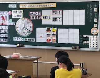 今日の食に関する指導のテーマは、「バランスのよいお弁当を考えよう」です。