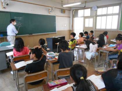 4年生は、算数科「角と角度」を学習しています。この時間は、角の大きさに見通しを立てて、直線が交わったときの角度を求めます。分度器で測ったり、計算で求めたり様々な考え方を出し合いました。