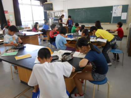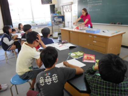 5年2組は、理科室で種の発芽について学習しました。インゲンの種の成分を調べたり、種の中を開いてそのつくりを観察しました。6年1組は、「ものが燃えるとき」の学習をしました。ものが燃えるためには、酸素が必要であることを、酸素を満たした集気びんの中かに、火をつけた線香を入れる実験で、その燃える様子を観察しました。