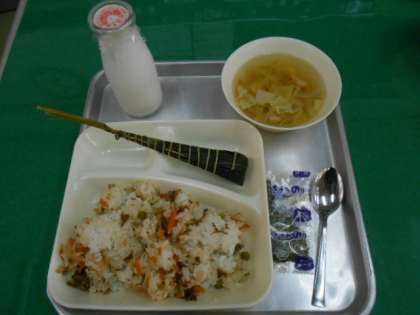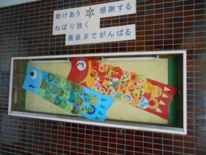 5月に入り、風薫る、さわやかな季節を迎えました。つつじの花が満開に咲き誇っています。今月も学校の様子をお伝えします。1日は、学校給食で行事献立として、ちまきがでました。また、玄関の掲示が、元気なこいのぼりに変わりました。