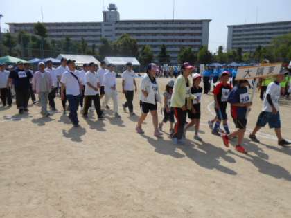 10日(日)午前9時から、豊里中央公園において第34回東淀川区健康の日のつどいが、開催されました。風がさわやかな五月晴れのもと、区内の大勢の老若男女が集う中で、様々に趣向を凝らした楽しい運動競技を通して、地域間の親睦を深められました。午前の2種目の様子をお伝えします。本校の児童も地域の方々と共に、競技に出場し、第1種目の「孫と一緒」の玉入れでは、玉1個及びませんでしたが、見事、準優勝しました。2種目目も「タンカリレー」で堂々の3位に入賞しました。