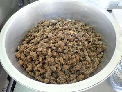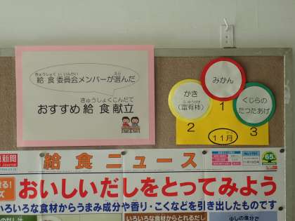 今日の献立は、くじらのたつたあげ、豚肉とじゃがいもの煮物、きゅうりの赤じそあえです。くじらのたつたあげは、給食としては3年ぶりの登場となります。日本では、くじらを使ったさまざまな料理が食べられてきました。肉だけでなく、皮や内臓、尾びれまで工夫して使うので、くじらは「捨てるところがない」といわれるほどです。