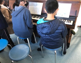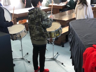 大だいこ、小だいこ、木琴、鉄琴、オルガン、ピアノ、リコーダー、トライアングルなど各パートに分かれて合奏をしていました。