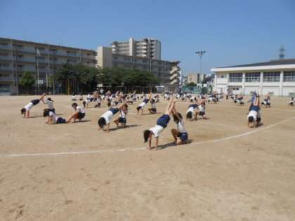 5・6年生が、本日、団体演技(組体操)の運動場デビューをしました。担当の先生の指示で一つ一つの技に挑戦しました。出来栄えは、まだまだこれからですが、回を重ねるごとに種類とボリュームが増してきています。本番まで、けがをしないように全員が助け合ってよりよい演技に仕上げてほしいです。