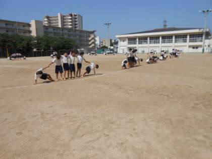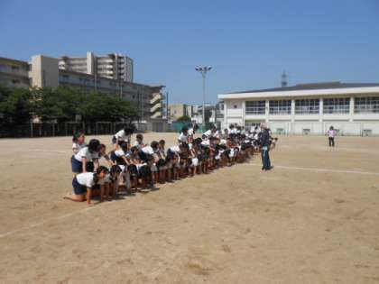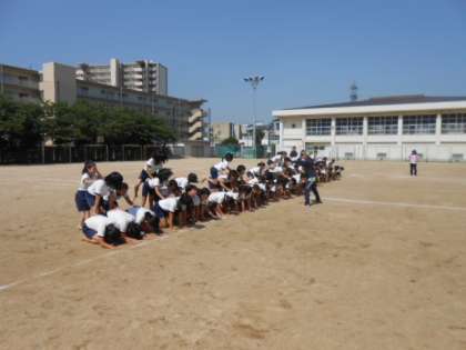 これから大技にも挑戦していきます。徐々に人数が増えると、互いの息が合わなければうまくいきません。これから、6年生が、5年生をリードして全員の心が一つにまとまってくると演技に磨きがでてきます。とても楽しみです。