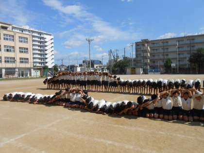 5・6年生は、組体操の練習で、全員による大技が次々と形作られ、一人一人の表情も真剣になってきました。