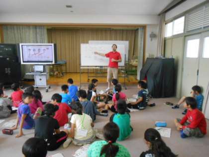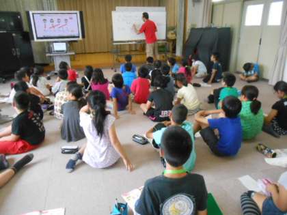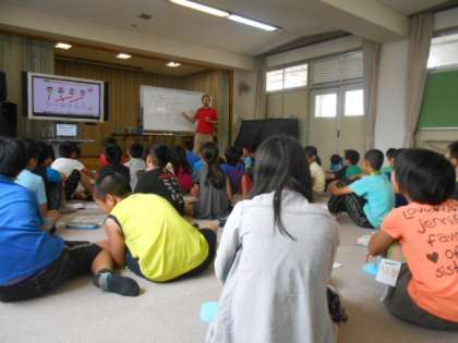 5年の外国語活動(英語)は、「How are yuo?」「I’m fine thank you」「How are you ?」「I’m fine too thank you」(「元気ですか?」「はい、元気です」「あなたも元気ですか?」「はい、わたしも元気です。」)をAngero(アンジェロ)先生のネイティブな発音に子どもたちも一生懸命に答えていました。いつも表情豊かに明るく英語を楽しませてもらっています。