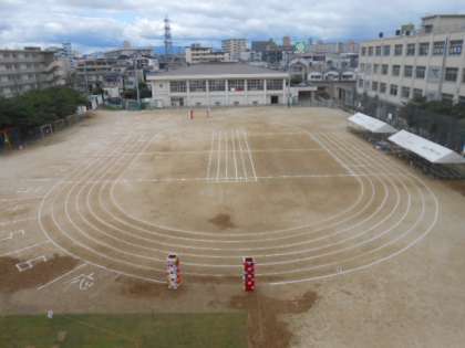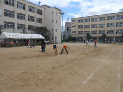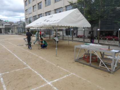 本日の土曜授業、3時間目は、5・6年生、教職員、PTA実行委員の応援で、運動会の前日準備をしました。ぬかるんだ運動場を整備し、本部・来賓席、放送・救護席、児童席、優先席の設営をし、トラックに新しいライン引いて、本番に備えました。明日、好天の下で、開催ができ、児童一人一人が、力を発揮してくれることを願っています。保護者、ご家族の皆様、地域の皆様、温かい応援を宜しくお願いいたします。