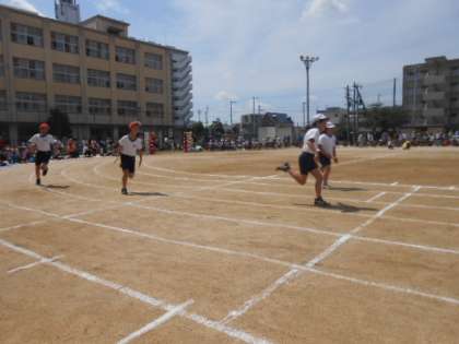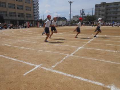 5年「短距離走」では、半周のセパレートコースをコーナーでスピードを落とすことなくゴールへ駆け抜けていました。