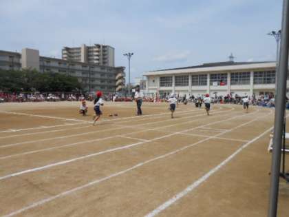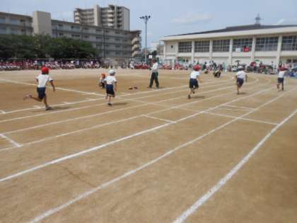 トラック半周セパレートコースの3年の個人走は、どの子もゴールまで力を出し切って走りました。