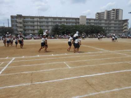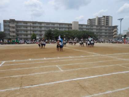 6年団体競技は、「決戦〜大隅東の陣〜」と題した騎馬戦です。どの騎馬も、勇壮に相手に向かっていきました。
