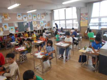4年生は、図画工作科で、紙工作による「ポップアップカード」の制作に取り組んでいます。