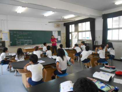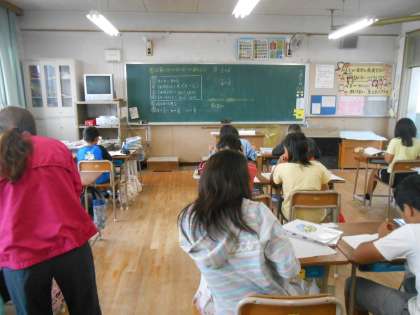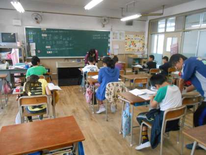6年の算数科は、+−×÷、( )の計算の規則について学習しています。また、理科では、身体についての学習で「吐く息と吸う息」の成分の違いについて、気体検知器を使って調べていました。
