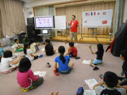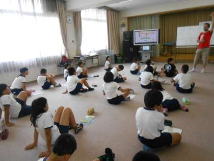 ↓6年生は、「When Your Birthday?」アンジェロ先生の英語で誕生日を尋ねられた子どもたちは、しっかりと答えていました。