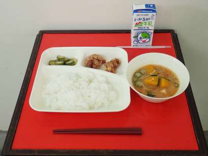 今日の給食には、豚肉のたつたあげがでました。