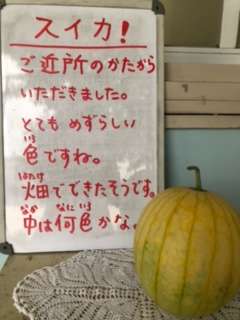 ご近所の方に、畑で実ったスイカをいただきました。
