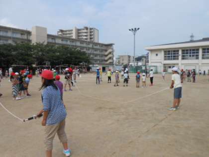今朝の児童集会は、なかよし班活動をしました。たてわりのなかよし班で、転がしドッジボール、なわとび、初めの第1歩を楽しみました。各班6年生の班長が低中学年をリードして、どの子も楽しめるように優しい世話を心掛けてがんばっていました。