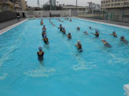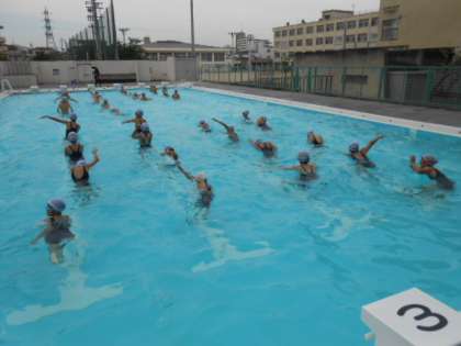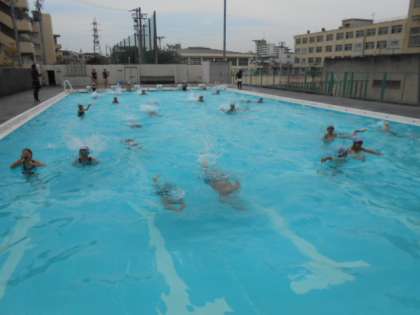6年生は、今日の水泳学習で、腕のかき方と息継ぎのストロークをリズム水泳で練習しました。そのあと、平泳ぎのキックを練習しました。