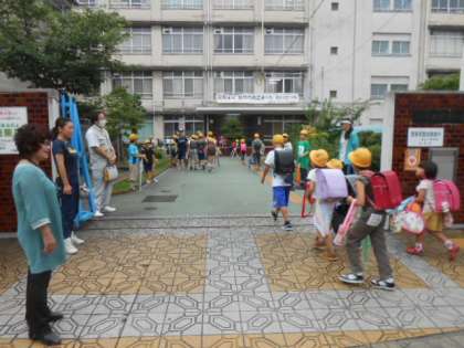 今週はあいさつ運動週間です。ほとんどの児童は、8時10分から20分の間に集団登校します。児童会の児童が、当番で玄関に立って元気にあいさつを呼びかけてくれています。日に日に元気なあいさつができてきました。