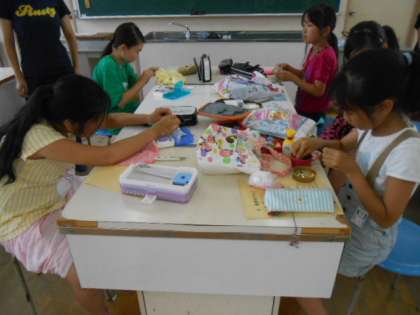 家庭科クラブは、各自が作りたいものの材料を用意して、手芸作品を仕上げていました。かわいいマスコットや大きなクッションと様々なものをみんな仲良く上手に作っていました。