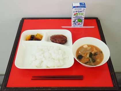今日の給食には、かぼちゃのいとこ煮が出ました。
