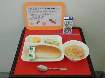 食物アレルギー対応が必要な子どもたちも食べることができるように、アレルギー対応を目的として開発している食品を使用し、除去食とは違うアプローチでの対応となる献立が登場します。