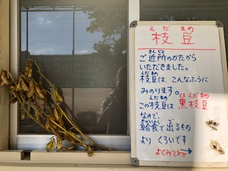 普段、枝ごと見ることはあまりないのですが、枝豆はこのように実ります。