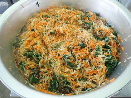ビビンバは、ごはんの上にナムル(野菜のあえもの)や肉などをのせた韓国・朝鮮料理のひとつです。