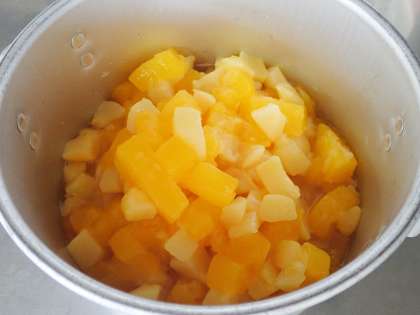 そこに、ゼリー(みかん)と白桃(カット缶)を混ぜ合わせたフルーツゼリーとの組み合わせでした。