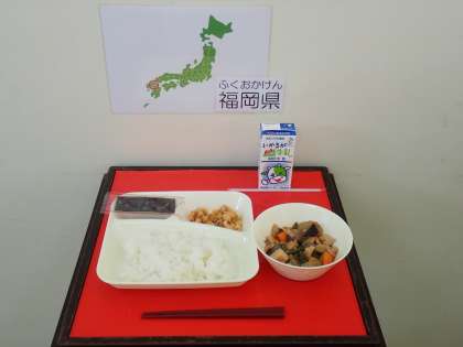 今日の給食には、おせち料理のひとつでもある筑前煮が登場しました。