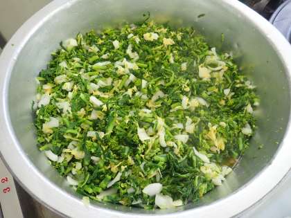 鮮やかな緑色をしたほろ苦い味が特徴の野菜で、春が旬(たくさんとれて、おいしい季節)です。