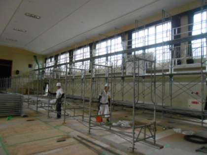 9月1日から10月31日の期間、体育館の天井改修工事をします。大型地震による天井材の落下防止のために改修します。この期間は、体育館の使用ができません。また、近隣の地域住民の方々には、ご迷惑をおかけいたしますが、何卒ご理解とご協力を賜りますようよろしくお願い申しあげます。