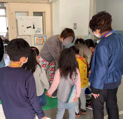 2年生は1年生に、いろいろな教室の場所を優しく教えていました。