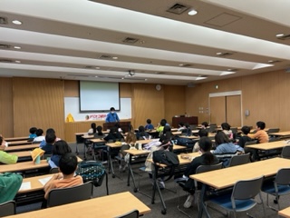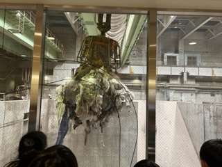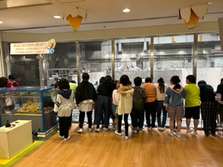 社会で学んだことを、実際に見学して、確かめています。クレーンの大きさに驚きました。この後も見学していきます。