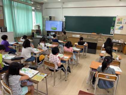 理科で、モンシロチョウの成長の様子を写真を見ながら、学習してします。この後、テストです。さあ、みんな、頑張ってね。