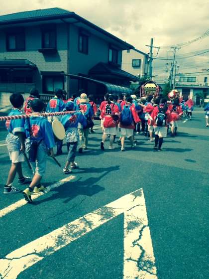 6日(日)区民まつりがあり、児童、保護者、地域の方々と町中を練り歩きました。午前9時に大隅東会館を出発し、各町会ごとに神輿と酒樽の山車で、安全と無病息災を祈願しました。