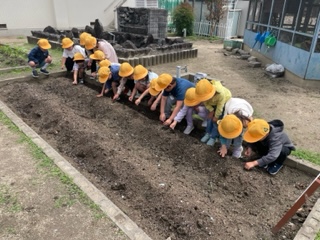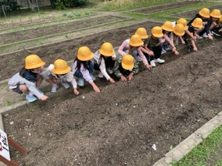 今日は生活科の授業で学習園でひまわりの種を植えました。
