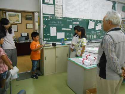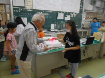 1時間目に敬老ふれあい集会をしました。運動場でする予定でしたが、雨天のため急きょ変更し、校内放送で行いました。敬老会会長の石野賢治様に代表して来校していただきました。児童会から歓迎のことばの後、石野様より全校児童にマイクを通してお話をしていただきました。そして、敬老会からは、雑巾を各クラスにいただきました。児童からは、一人一人が書いた手紙全員分をお渡ししました。敬老会の皆様をはじめ地域の皆様のますますのご健康を願っています。これからも、子ども達を温かく見守ってください。宜しくお願い致します。
