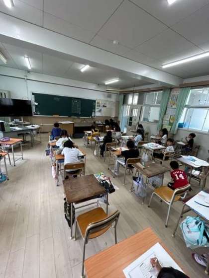 赤、青、緑。色とりどりのグラデーションを使って、自分たちが作りたい模様を描いています。どんな作品に仕上がるのか楽しみです。
