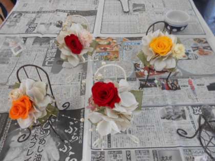 家庭科室では、10時からPTA主催のプリザーブドフラワー体験会がありました。