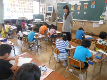 1年生が、2,3時間目に栄養指導の授業を受けました。3匹のこぐまのお話で「すききらいをしないでたべよう」のテーマで「体をつくる」「熱や力のもとになる」「体の調子を整える」食物3要素について学習しました。
