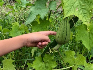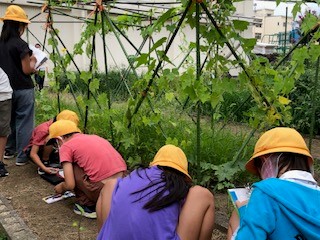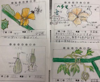 学習園で育てているへちまの観察をしています。