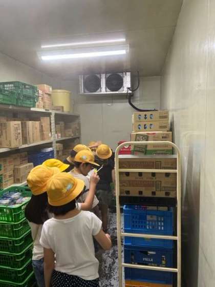 11人ずつのグループに分かれて、店長さんや副店長さんに案内してもらいながら、普段は立ち入ることのできないバックヤードに入らせてもらったり、商品の並べ方についての説明を受けたりしながら、店内を歩き回りました。冷凍庫に入らせてもらったときには