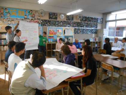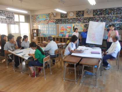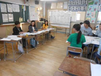 5時間目に行われた5年1組の国語科授業を全教員が参観しました。6時間目終了後の授業検討会で、グループで分析し成果と課題を協議しました。大阪市教育センター 松岡里美教育指導員より指導助言を受け、子ども達の国語力を高めるための国語科の指導についての理解を深めました。