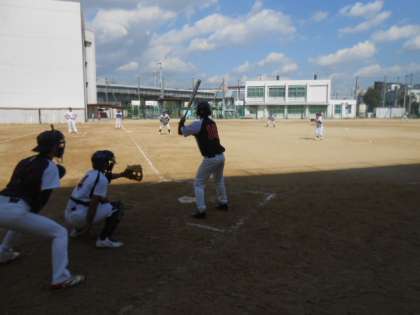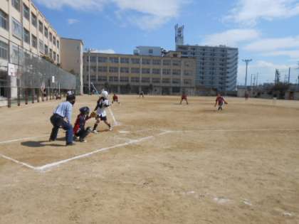 12日(月)秋晴れの下、瑞光中学校と大隅東小学校のグランドで中学校区PTA4校ソフトボール大会が開催されました。